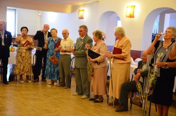Z okazji przeżycia jubileuszu 50-lecia zawarcia związku małżeńskiego 21 par zostało odznaczonych medalami za Długoletnie Pożycie Małżeńskie. Dostojni Jubilaci wzięli udział o godz.12.00 w dziękczynnej Mszy św., a potem po przejściu do Domu Ludowego z rąk Wójta Gminy Krościenko Wyżne p. Jana Omachla otrzymali medale wraz z gratulacjami i życzeniami.