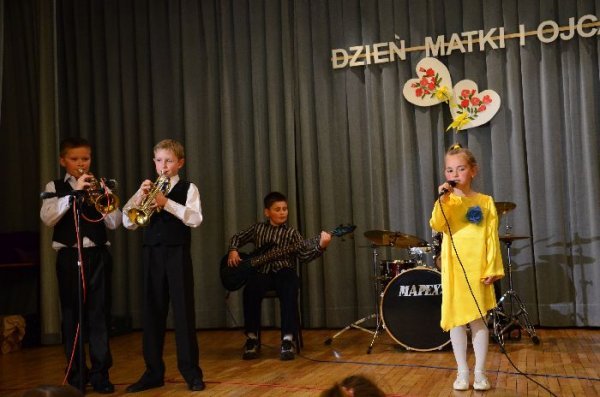 Jako pierwsze na scenie zaprezentowały swój program dzieci z oddziałów zerowych, pod opieką swoich wychowawczyń: Małgorzaty Prugar, Urszuli Tomkowicz i Małgorzaty Pitery. Towarzyszyli im członkowie koła wokalnego prowadzonego przez Monikę Węgrzyn. Następnie solową piosenkę wykonała Sabina Mercik. W dalszej części uroczystości scenki kabaretowe zaprezentowali członkowie koła teatralnego z gimnazjum pod kierunkiem Katarzyny Marszałek. Koncert zakończyły występy zespołów muzycznych pod opieką Macieja Filara. Najpierw zaprezentowali się uczniowie klas młodszych szkoły podstawowej, a następnie zespół Song z gimnazjum.
