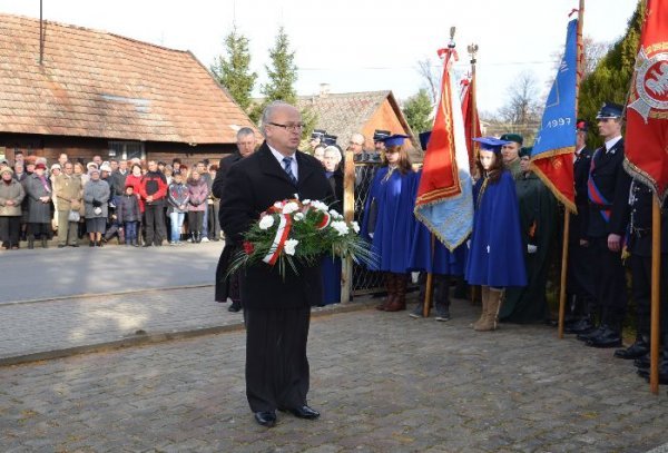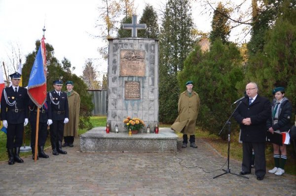 Przed Pomnikiem okolicznościowe przemówienie wygłosił Wójt Gminy Jan Omachel, a delegacje złożyły kwiaty oddając cześć poległym za Ojczyznę.
