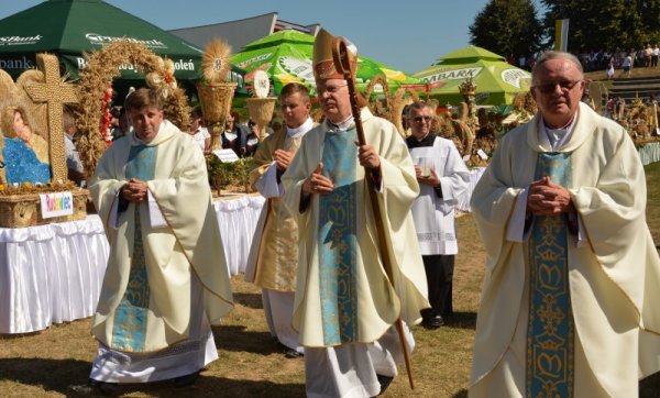 O godz. 12.00 rozpoczęła się msza św. dziękczynna za zebrane plony, którą odprawił i Słowo Boże wygłosił J.E. Ksiądz Arcybiskub Józef Michalik Metropolita Przemyski.
