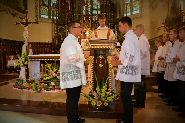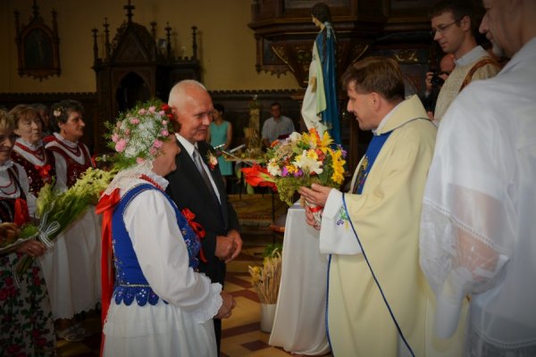 15 sierpnia w naszej gminie świętowaliśmy dożynki czyli dzień dziękczynienia za plony. Na mszy św. o godz. 9.00 święciliśmy wieńce dożynkowe przyniesione przez delegacje. Wzięli w niej udział przedstawiciele władz na czele z Dariuszem Sobierajem – radnym województwa podkarpackiego, Markiem Aftanasem - radnym powiatu krośnieńskiego, Janem Omachlem wójtem gminy Krościenko Wyżne oraz Antonim Dębcem przewodniczącym rady gminy Krościenko Wyżne. Uroczystej eucharystii przewodniczył ks. proboszcz Wiesław Kałamarz, natomiast homilię wygłosił ks. Piotr Porada.