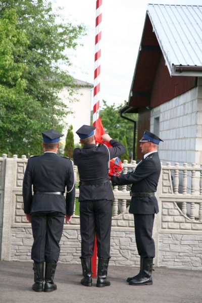 Po przywitaniu przybyłych gości i mieszkańców, złożeniu meldunku, podniesiono flagę Związku ZOSP RP na maszt oraz odegrano hymn związkowy.