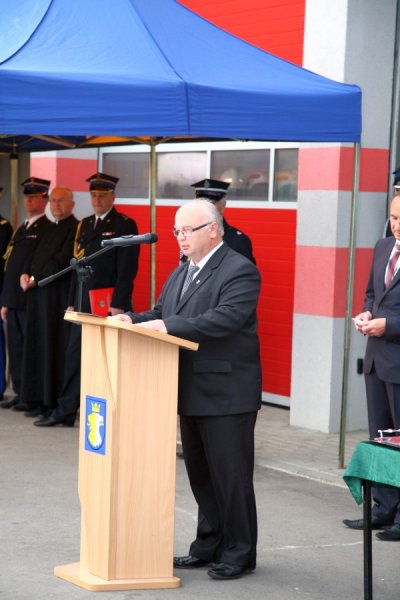 Następnie głos zabrało kilku gości dziękując strażakom za ich służbę i poświęcenie, za  działania ratownicze. W dalszym ciągu uroczystości prezes OSP Pustyny dh Krzysztof Podkul wygłosił okolicznościowy referat, zapewniając, iż nowy samochód trafił we właściwe ręce i do odpowiednich ludzi. Zaręczył, że OSP Pustyny jest gwarantem bezpieczeństwa na terenie naszej miejscowości, gminy i powiatu. Podniosłego przekazania mercedesa dokonał wójt gminy Krościenko Wyżne Jan Omachel, Przewodniczący Rady Gminy Krościenko Wyżne Antoni Dębiec, oraz nadbrygadier Bogdan Kuliga.