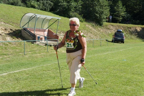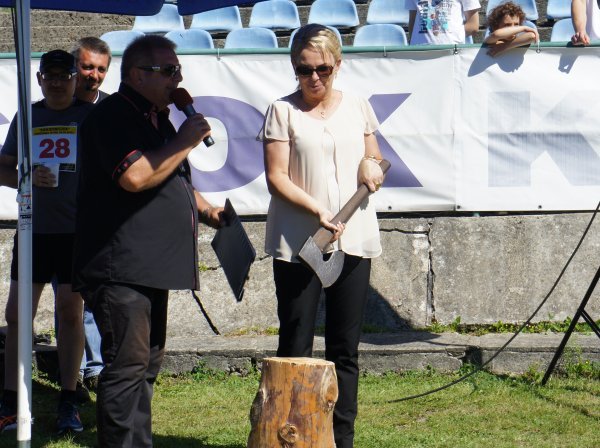 Rywalizacja biegowa w tym roku była szczególna pod wieloma względami. Twórca sekcji biegowej w Krościenku Wyżnym Pan Janusz Szmyd, późną jesienią ubiegłego roku wzdłuż i wszerz przemierzył rozdroża Krościenka Wyżnego. Swoje pomysły przeniósł później na mapę i wymyślił szlaki, na których mogli w tym roku rywalizować pasjonaci biegania i chodzenia. W latach ubiegłych trasa biegu głównego prowadziła w całości po drogach asfaltowych. W tym roku na dystansie 10 km większość stanowiły drogi i ścieżki polne. Biegaczom towarzyszyły m.in. piękne widoki ze szczytów góry Marynkowskiej, chłód Księżego Lasu i Dębiny. Mieli również okazję zobaczyć Dwór w Krościenku Wyżnym. Na krótszej trasie 5 km oprócz biegaczy rywalizowali też pasjonaci nordic walking. W zawodach wzięli także udział samorządowcy. W biegu na 5 km „Siekierniczek” wystartował przewodniczący Rady Gminy Krościenko Wyżne Pan Antoni Dębiec, natomiast w „Marszu Siekiernika” nordic walking również na 5 km dzielnie walczył radny Pan Edward Marszałek. Obydwaj Panowie godnie reprezentowali nasz samorząd pozostawiając w tyle niemałą grupę uczestników. Swoją postawą i dobrą formą fizyczną dali wspaniały przykład. (zapraszamy za rok wszystkich radnych naszej gminy). Kolejną nowością był znak startu do biegu jaki dała uczestnikom, pewnym uderzeniem siekiery w drewniany pieniek Pani Alicja Fejkiel-Guzik. Większość startujących, często w każdy weekend bierze udział w różnego rodzaju zawodach biegowych ale zgodnie orzekli, że pierwszy raz spotkali się z tak oryginalnym dźwiękiem rozpoczęcia rywalizacji. Pierwszy raz relację z biegów przygotował zespół Telewizji Rzeszów. Na zawodach obecny był również przedstawiciel tygodnika Nowe Podkarpacie. Władze gminy dla najmłodszych przygotowały bezpłatny fikoland, a dla „trochę starszych” wieczorem zagrał zespół RICO. Zawodnicy, którzy ukończyli „Marsz Siekiernika” oraz „Dychę Siekiernika” i „Siekierniczek” na mecie otrzymali piękny medal w kształcie, jakże by mogło być inaczej - siekiery. Po biegu na sportowców czekał smaczny posiłek ufundowany przez firmę Galicyjskie Jadło. Tego dnia również pogoda była „wyjątkowa”. Upał był niesamowity.