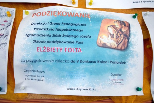 5 stycznia w Przedszkolu Niepublicznym Zgromadzenia Sióstr św. Józefa w Krośnie odbył się już piąty Konkurs kolęd i pastorałek dla dzieci w wieku przedszkolnym z Krosna i okolic.