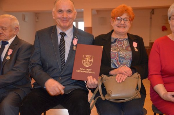 Mieszkańcy gminy Krościenko Wyżne, którzy przeżyli ponad pół wieku w związku małżeńskim, spotkali się na uroczystości wręczenia Medali za Długoletnie Pożycie Małżeńskie nadanych przez Prezydenta Rzeczypospolitej Polskiej. Uroczystość odbyła się 16 grudnia 2017 r. w Domu Ludowym w Krościenku Wyżnym. Dostojnych Jubilatów powitał Mariusz Gałuszka, kierownik Urzędu Stanu Cywilnego. Następnie Wójt Gminy Jan Omachel dokonał dekoracji medalami życząc świętującym kolejnych lat w zdrowiu i miłości. Do życzeń przyłączyli się Przewodniczący Rady Gminy Antoni Dębiec i sołtys Bolesław Pudłowski. Nie zabrakło lampki szampana i odśpiewania tradycyjnego „sto lat”. Po części oficjalnej małżonkowie mogli spędzić miłe chwile podczas obiadu i występu artystycznego młodzieży szkolnej z zespołu „Song”.
