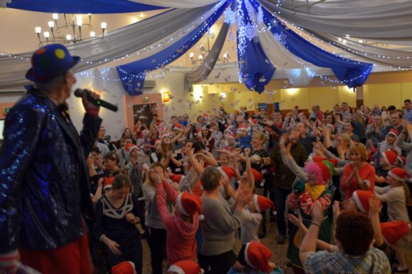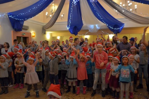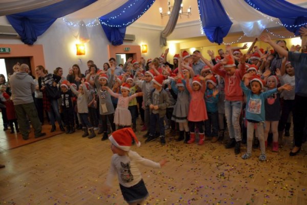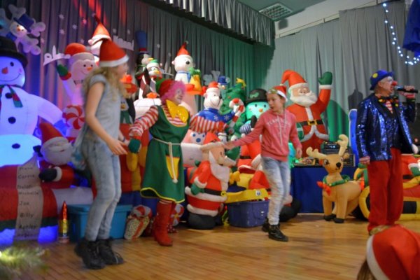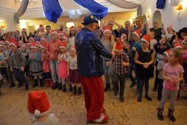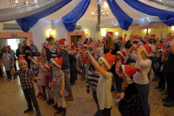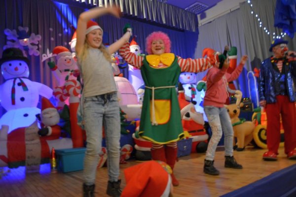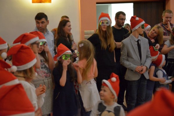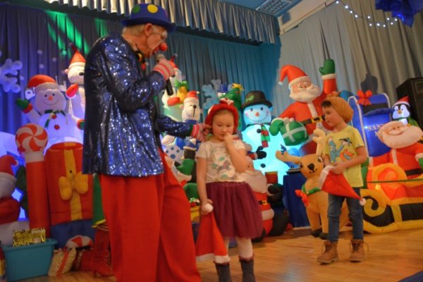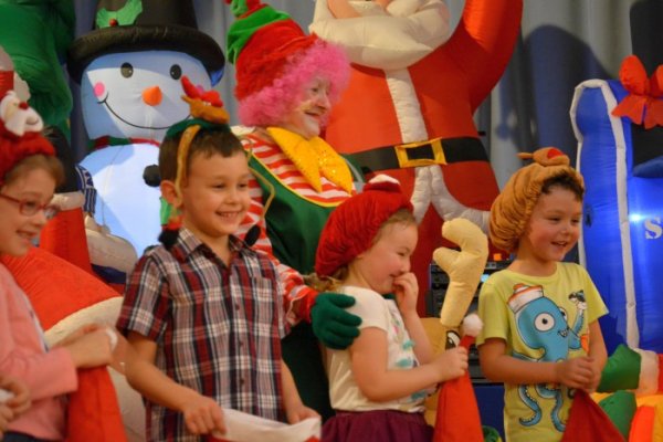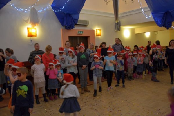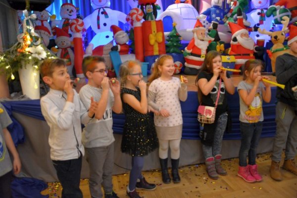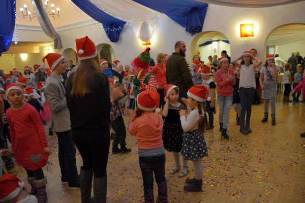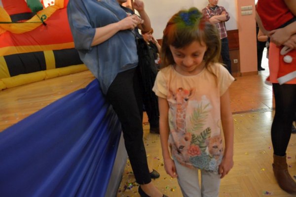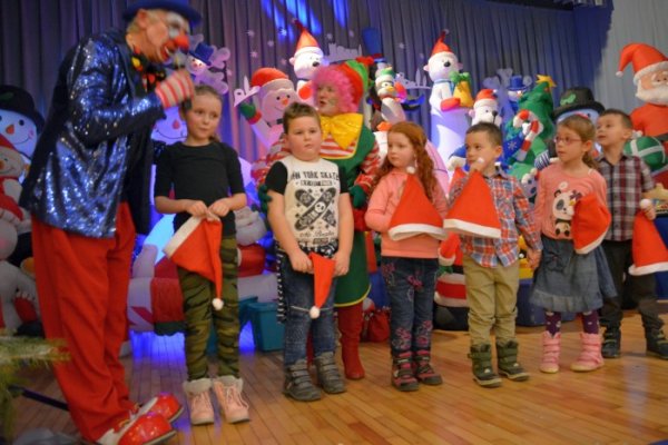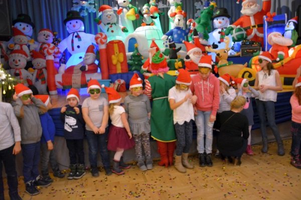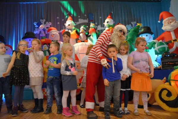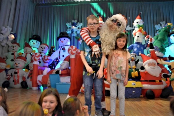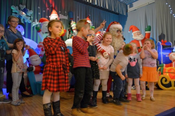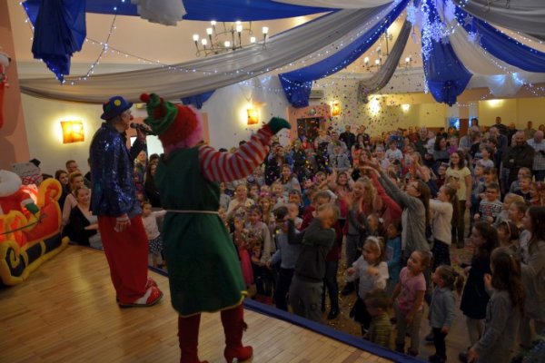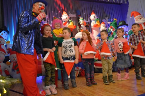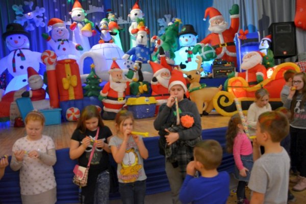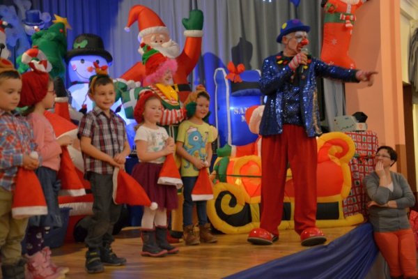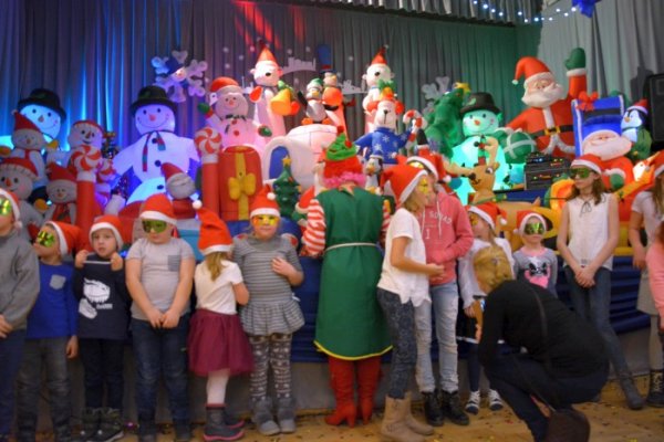Podczas widowiska wszystkie dzieci otrzymały czapki mikołajowe, kolorowe okulary, słodycze, trąbki. Każde dziecko miało okazję do pomalowania włosów a także posypanie ich brokatową posypką. Nie zabrakło płynu do baniek mydlanych, confetti, nagród w konkursach. Na scenie można było zobaczyć min.: tańczące Mikołaje. Nasi milusińscy przez ponad trzy godziny byli radośni, uśmiechnięci i weseli.