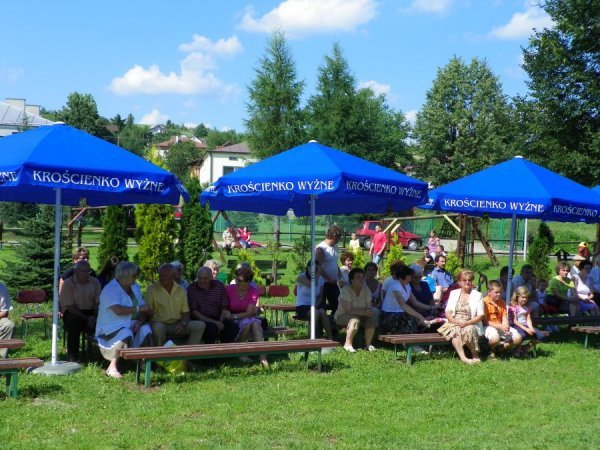 W piękne, słoneczne popołudnie, 17 lipca br. na placu rekreacyjno-sportowym w Krościenku Wyżnym odbyło się „Letnie spotkanie w altanie”. Organizatorem był Wójt Gminy p. Jan Omachel oraz Rada Sołecka Krościenko Wyżne. W imprezie uczestniczyło kilkaset osób, które przybyły całymi rodzinami. W programie wystąpił zespół i kapela „Lubatowianie”, koncertujący nie tylko w kraju, ale i za granicą. Sponsorem „Lubatowianów” był p. Waldemar Fejkiel – współwłaściciel Firmy ENERGOTEST Sp. z o.o. w Krośnie. Nie zabrakło rodzimych zespołów tj. SONG oraz Orkiestra Dęta OSP Krościenko Wyżne. Ogromnym zainteresowaniem cieszył się darmowy FIKOLAND (zjeżdżalnia). Nasi milusińscy w kolejce cierpliwie oczekiwali nawet kilkadziesiąt minut. Dzieciom tę radość zapewnił sponsor p. Waldemar Fejkiel – właściciel Cukierni W-Zetka. Do tańca przygrywał zespół muzyczno-wokalny ABC.