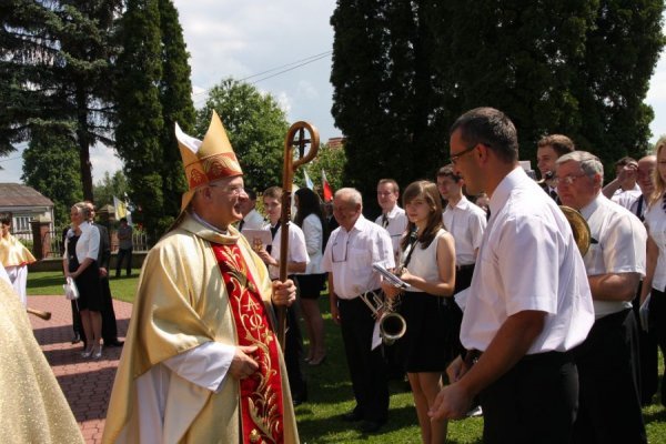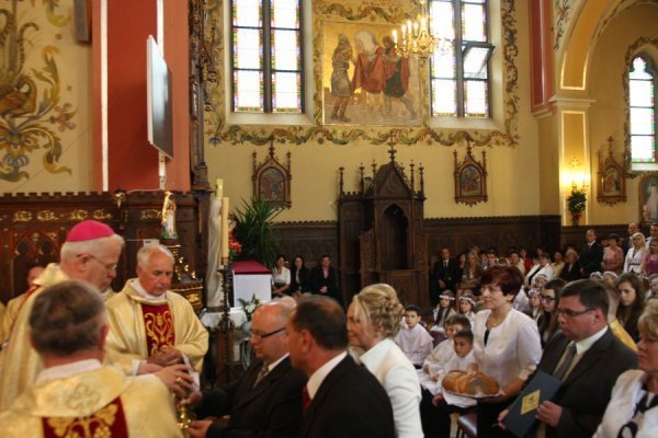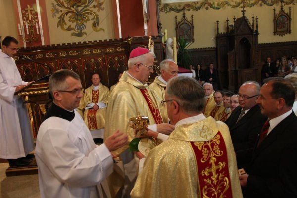 Całą uroczystość uświetnił Ksiądz Arcybiskup Metropolita Przemyski Józef Michalik, który koncelebrował Jubileuszową Mszę Świętą. Swoją obecnością zaszczycili: Stanisław Piotrowicz - poseł RP wraz z małżonką, Dariusz Sobieraj – wiceprzewodniczący sejmiku wojewódzkiego oraz Andrzej Guzik – wicestarosta krośnieński. Oprawę muzyczną mszy św. zapewniła gminna orkiestra dęta. W jubileuszowe obchody włączyły się władze Gminy Krościenko Wyżne: Jan Omachel – wójt gminy, Antoni Dębiec – przewodniczący rady, Alicja Fejkiel-Guzik – sekretarz gminy, ofiarując dary ołtarza tj. kielich i puszkę mszalną oraz kwiaty. Natomiast dyrektorzy i kierownicy gminnych jednostek organizacyjnych złożyli bon dla rodziny potrzebującej.
