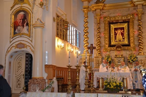 Głównym punktem wycieczki była wizyta w Sanktuarium Matki Bożej Bolesnej w Kałkowie-Godowie. Pod względem liczby odwiedzających pielgrzymów, jest to trzecie, najchętniej odwiedzane miejsce w Polsce, po Częstochowie i Licheniu. Zarówno kościół, jak i całe otoczenie świątyni robią ogromne wrażenie. Na jego terenie znajduje się między innymi budowla zwana Golgotą – wysoki na 33 metry budynek, w którym usytuowane są kaplice upamiętniające martyrologię narodu polskiego, Grota Lourdzka, Droga Krzyżowa z pięknie rzeźbionymi stacjami i mini zoo. W Sanktuarium wszyscy wspólnie uczestniczyli we Mszy Świętej przed cudownym obrazem Matki Bożej koncelebrowanej przez ks. Proboszcza Jana Szpunara.