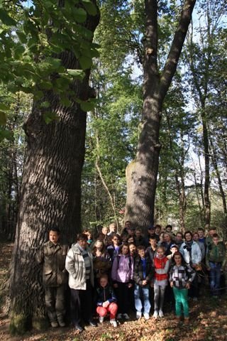 Pod tymi dębami wykonano wspólne zdjęcie na pamiątkę październikowego spotkania wśród drzew. Na koniec właściciel dworu zaprosił zebranych do swojego obiektu i oprowadzając po nim, opowiedział historię tej szlacheckiej rezydencji. Spotkanie zakończyło się w parku dworskim poczęstunkiem, ufundowanym przez Nadleśnictwo Dukla. Redaktorzy KLEKSA otrzymali gry edukacyjne przywiezione z warszawskich uroczystości oraz ciekawe materiały promocyjne od leśników.