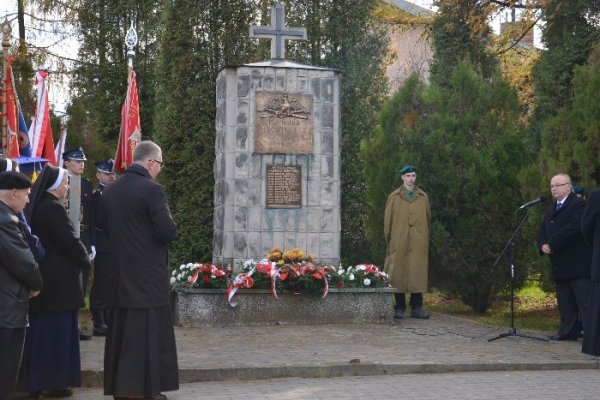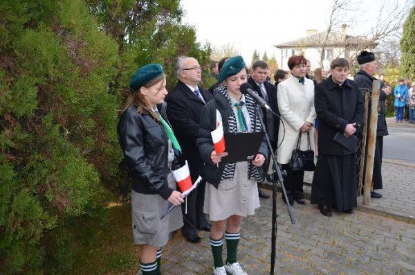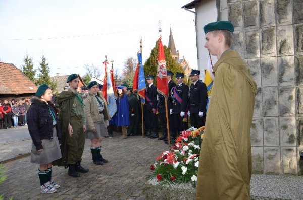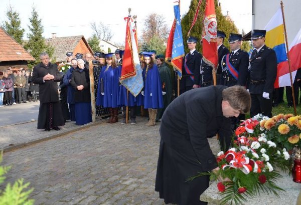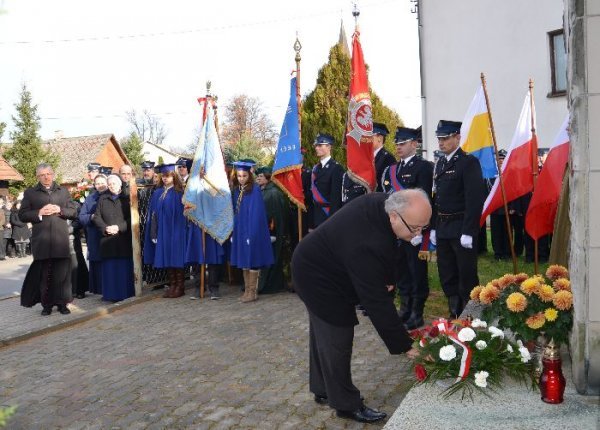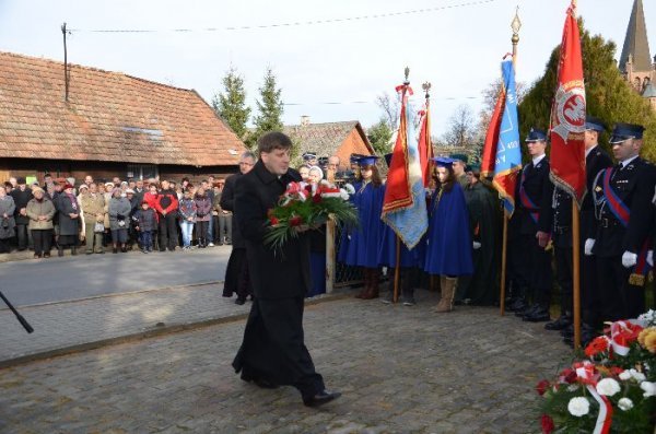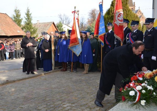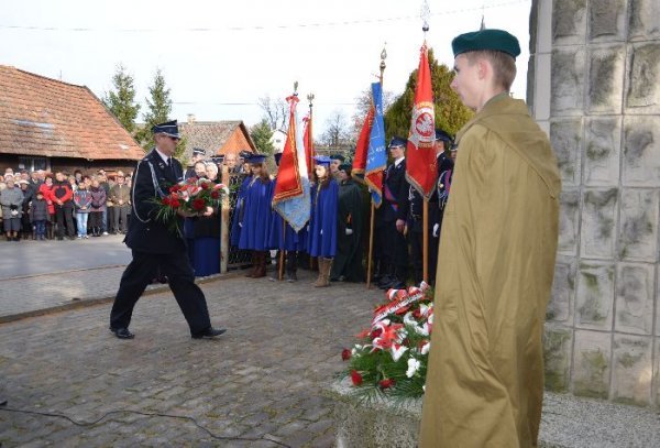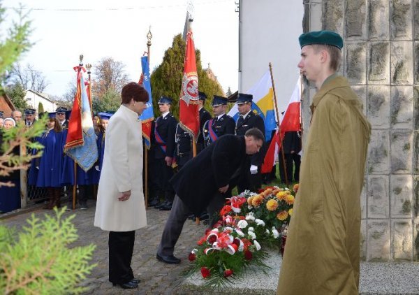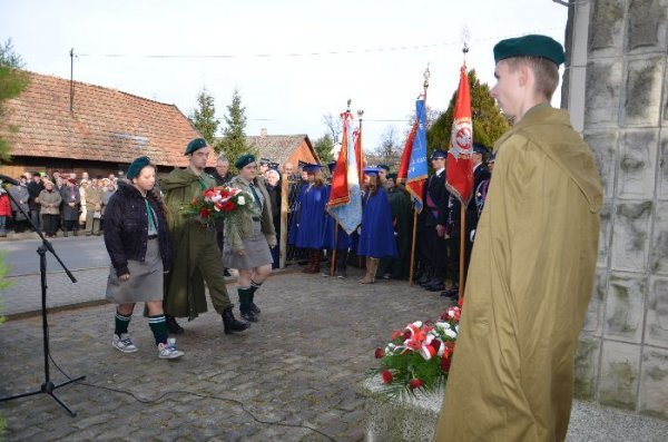 Przed Pomnikiem okolicznościowe przemówienie wygłosił Wójt Gminy Jan Omachel, a delegacje złożyły kwiaty oddając cześć poległym za Ojczyznę.