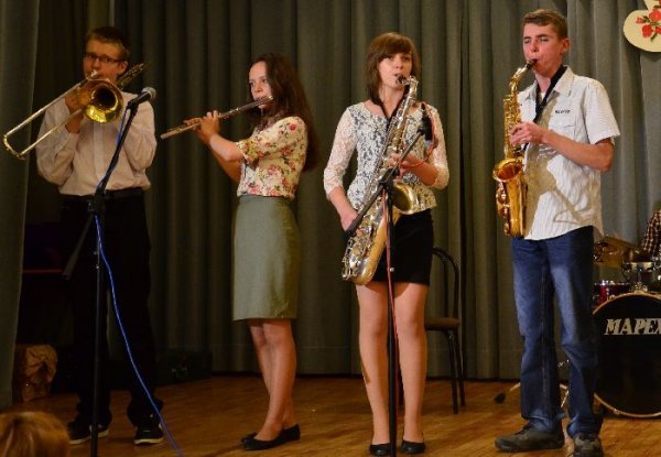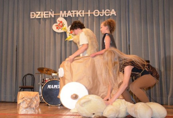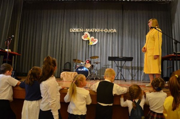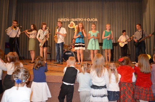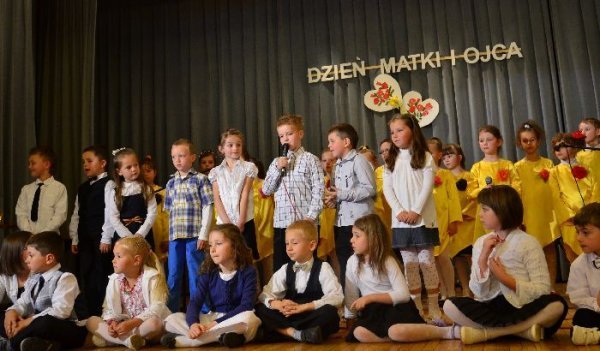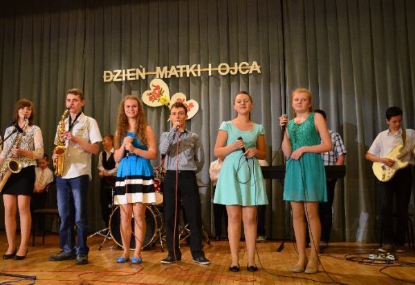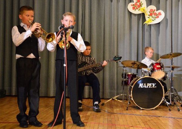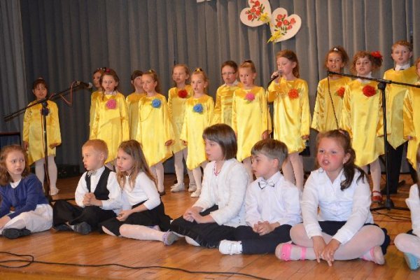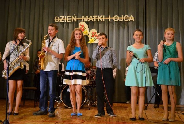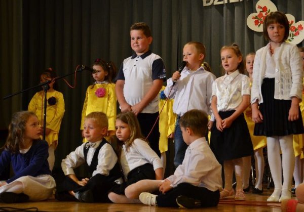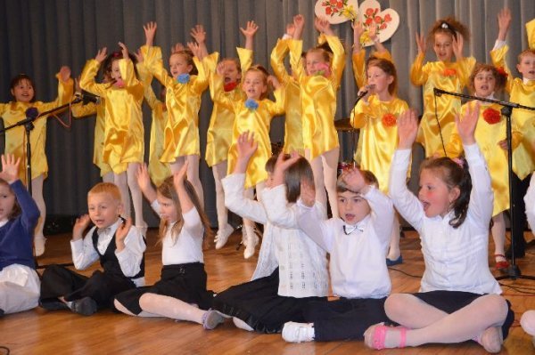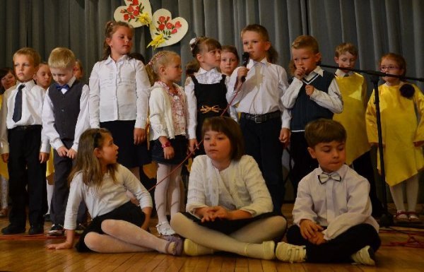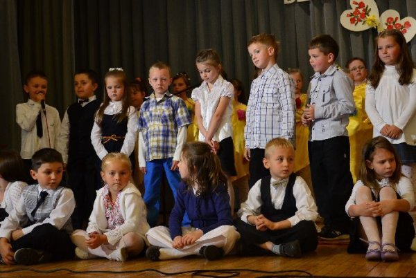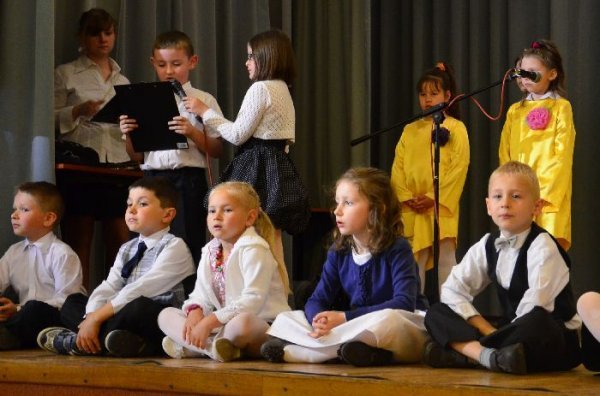 Jako pierwsze na scenie zaprezentowały swój program dzieci z oddziałów zerowych, pod opieką swoich wychowawczyń: Małgorzaty Prugar, Urszuli Tomkowicz i Małgorzaty Pitery. Towarzyszyli im członkowie koła wokalnego prowadzonego przez Monikę Węgrzyn. Następnie solową piosenkę wykonała Sabina Mercik. W dalszej części uroczystości scenki kabaretowe zaprezentowali członkowie koła teatralnego z gimnazjum pod kierunkiem Katarzyny Marszałek. Koncert zakończyły występy zespołów muzycznych pod opieką Macieja Filara. Najpierw zaprezentowali się uczniowie klas młodszych szkoły podstawowej, a następnie zespół Song z gimnazjum.