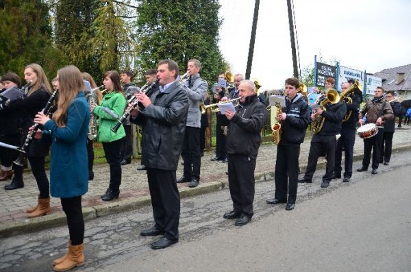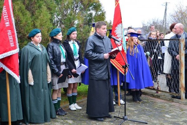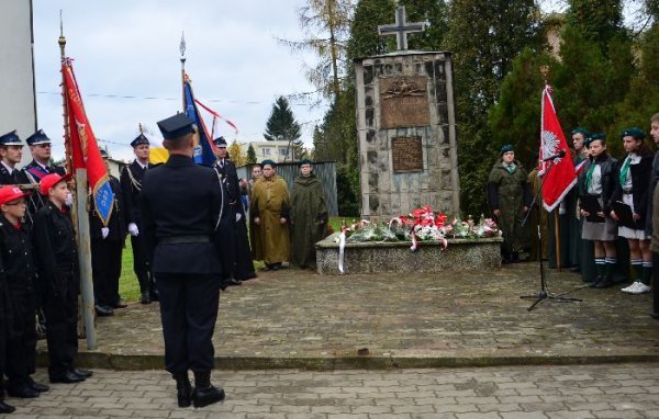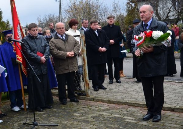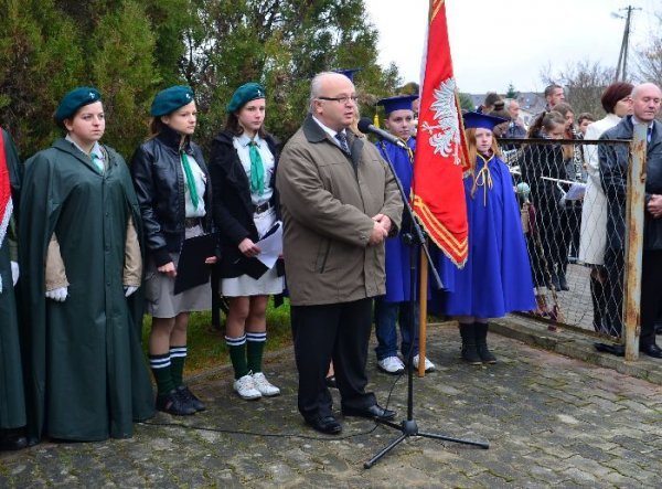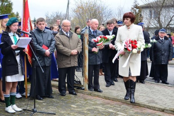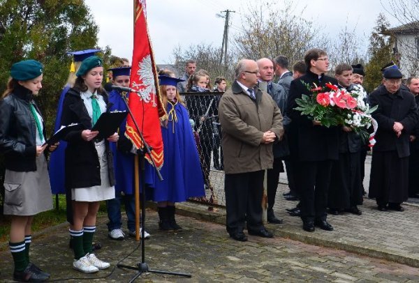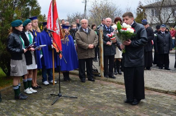 Po zakończonej eucharystii przy dźwiękach Gminnej Orkiestry Dętej mieszkańcy gminy prowadzeni przez świętego Marcina na koniu, poczty sztandarowe, strażaków i delegacje władz udali się pod Pomnik Grunwaldzki. Tam okolicznościowe przemówienie wygłosił wójt gminy Jan Omachel, zaś ks. proboszcz poprowadził modlitwę za poległych i w intencji Ojczyzny.