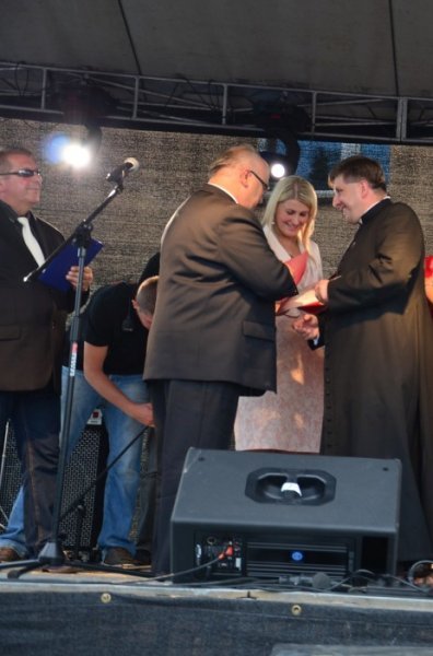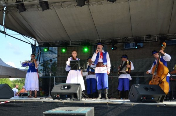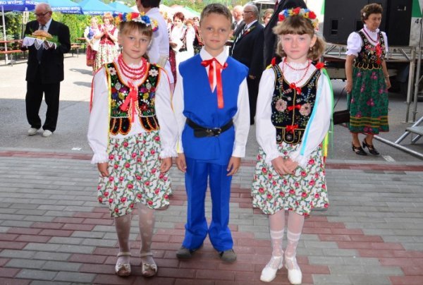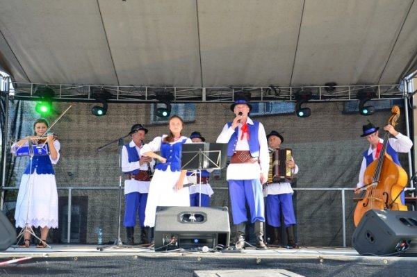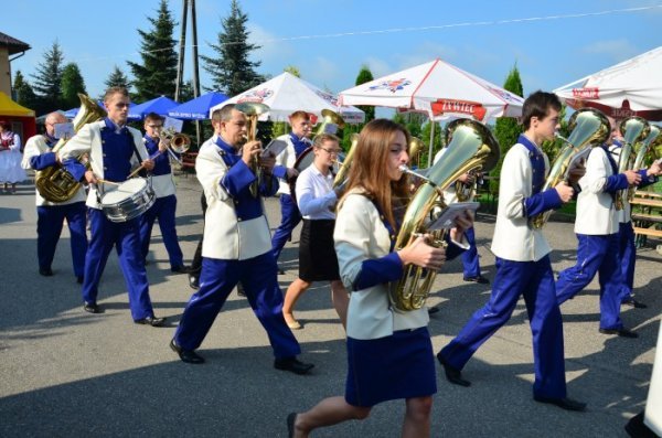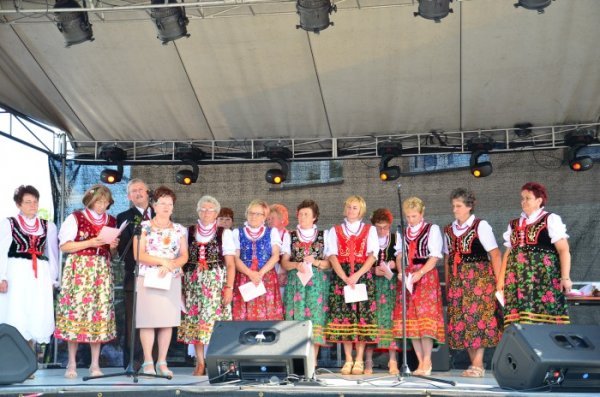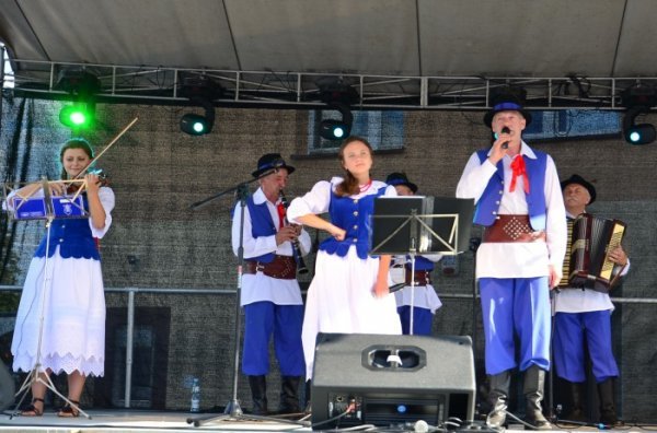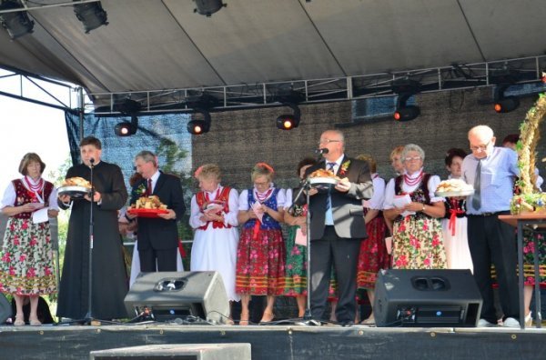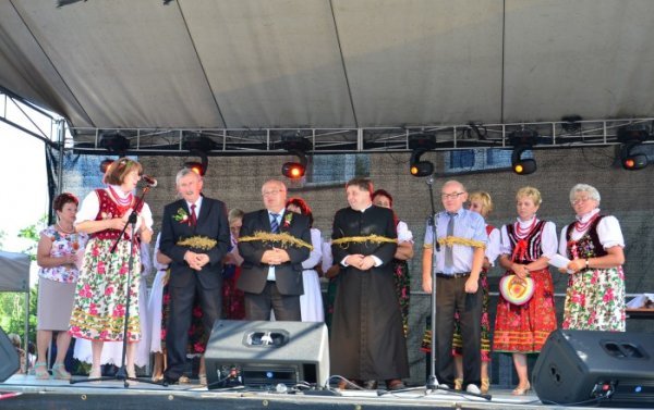 Program artystyczny przed Domem Ludowym rozpoczęły Panie z Koła Gospodyń Wiejskich. Następnie na ręce Wójta Gminy Jana Omachla, księdza proboszcza Wiesława Kałamarza, sołtysa Krościenka Wyżnego Bolesława Pudłowskiego oraz starostów Elżbiety Dryki i Eugeniusza Sucha przekazały chleb, którym częstowano wszystkich przybyłych na uroczystość. W dalszej kolejności na scenie zobaczyliśmy Kapelę Ludową Krościeniacy, Gminną Orkiestrę Dętą oraz zespół Hakuna Matata.