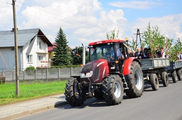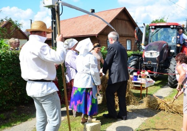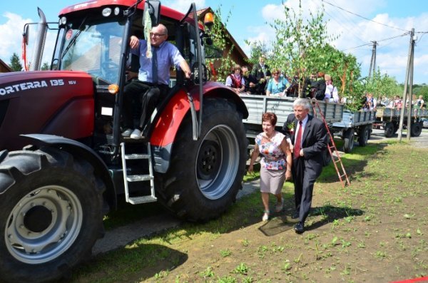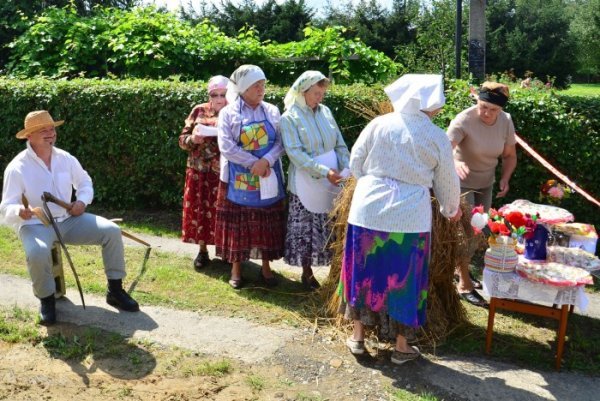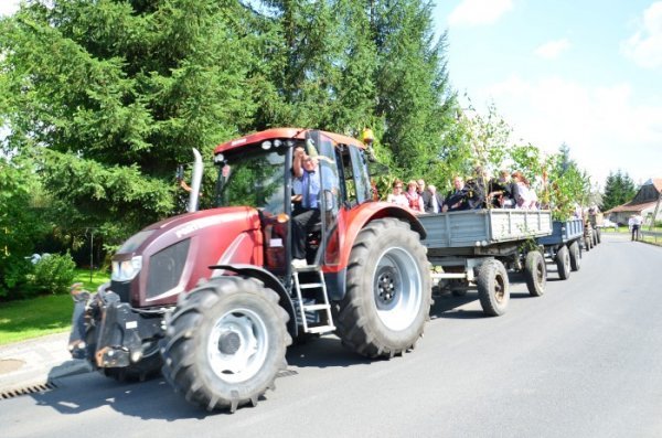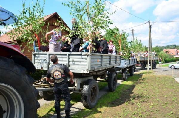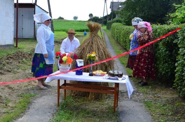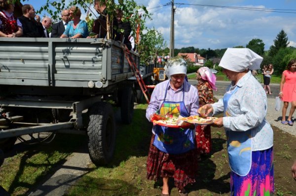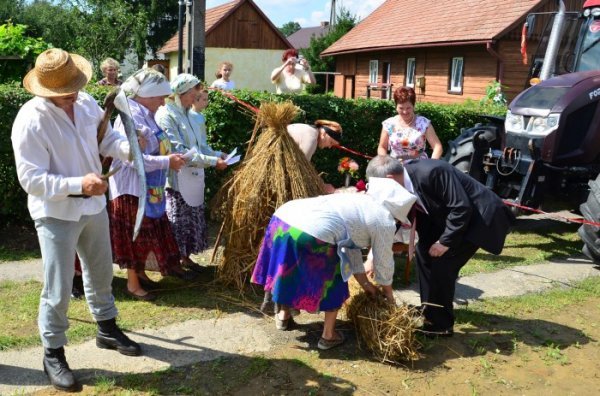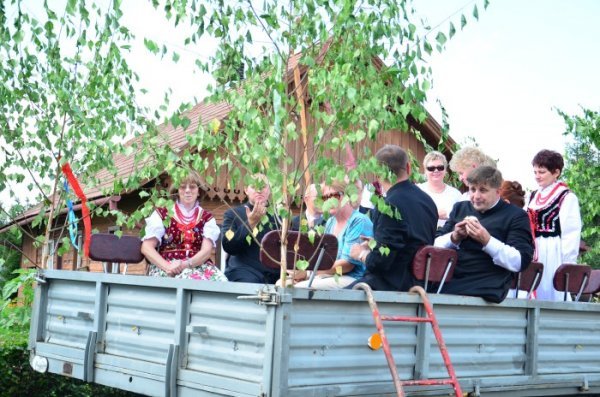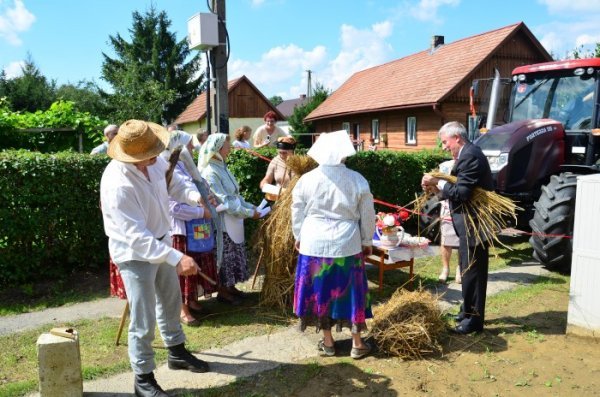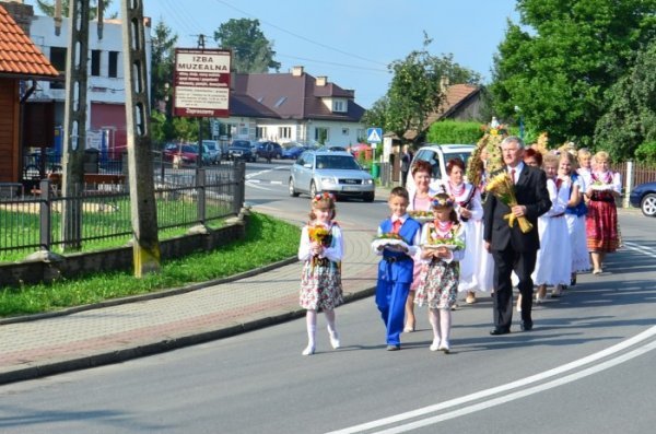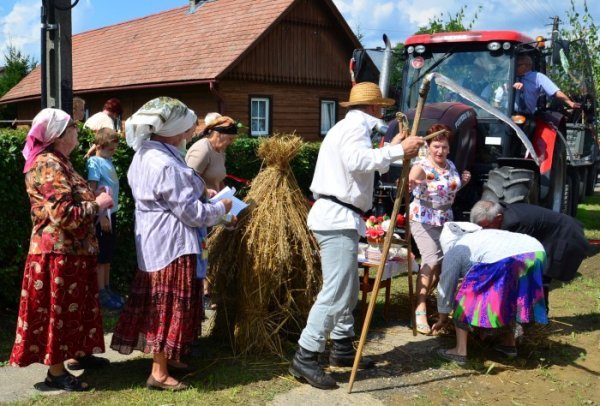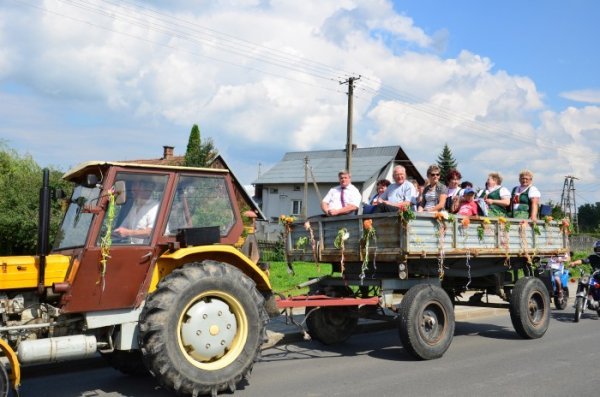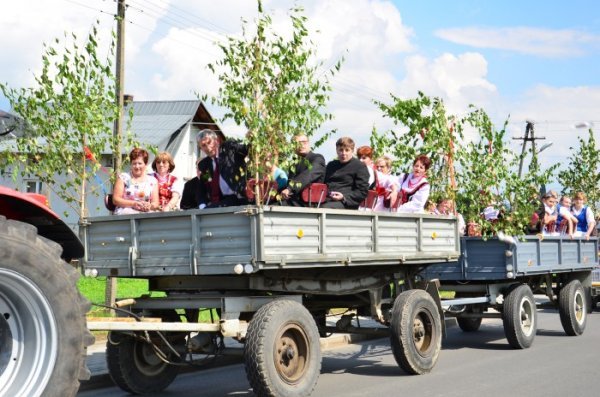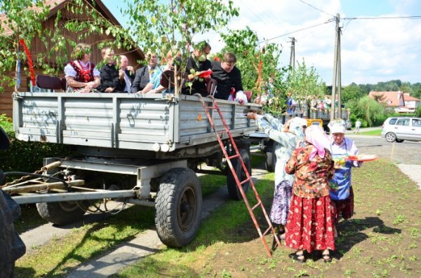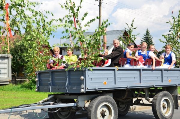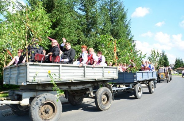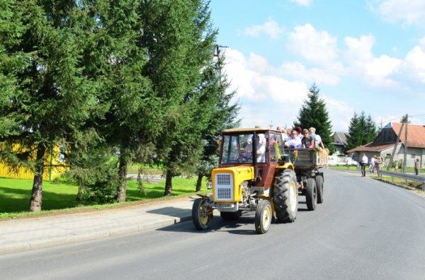 W godzinach popołudniowych wójt gminy, starostowie dożynek, sołtysi oraz panie z Kół Gospodyń Wiejskich z Krościenka Wyżnego i Pustyn, wyruszyli na tradycyjny objazd z wieńcami. Wszystkich mieszkańców pojawiających się na trasie, nagradzano słodkimi cukierkami.