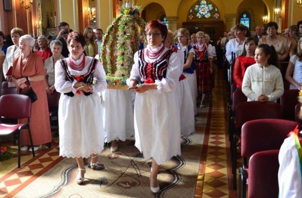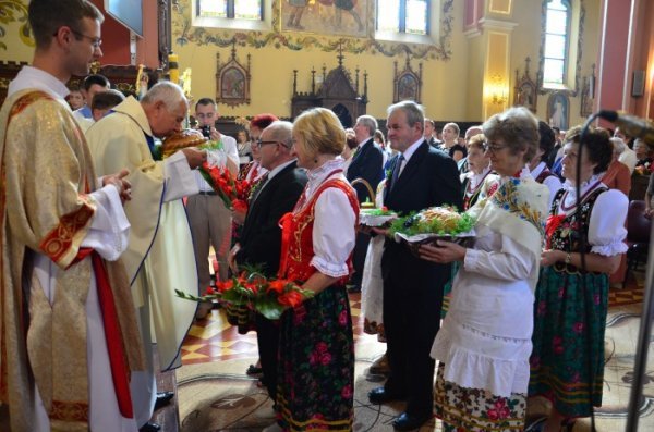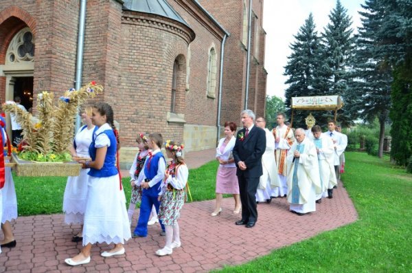Uroczystości rozpoczęła Msza Święta, której przewodniczył ks. prałat Jan Szpunar, a homilię wygłosił ks. proboszcz Wiesław Kałamarz. Po eucharystii zaproszeni goście udali się na śniadanie dożynkowe przygotowane przez panie z Koła Gospodyń Wiejskich.
