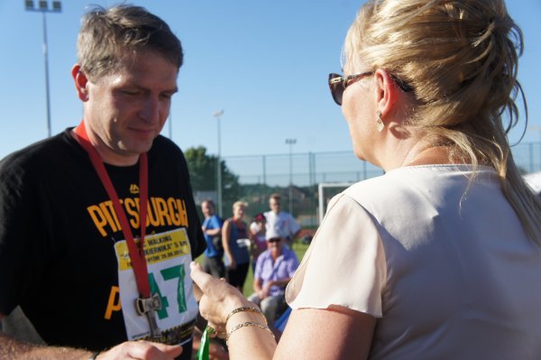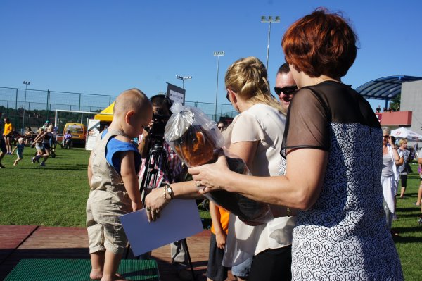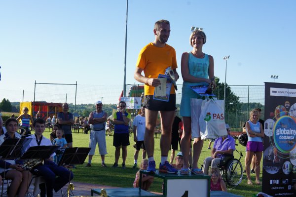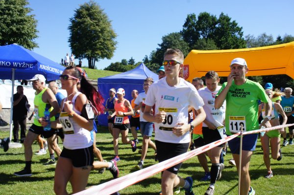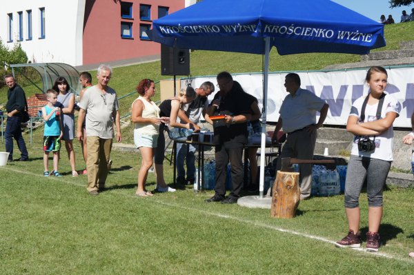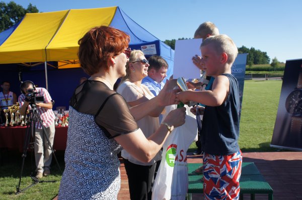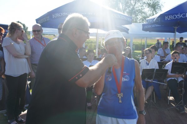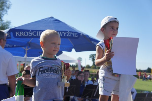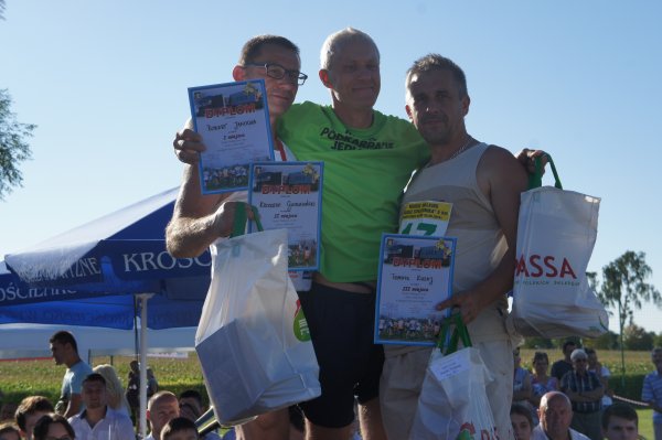 Zanim jednak w szranki stanęli starsi zawodnicy, na stadionie Gminnego Ośrodka Sportu i Rekreacji rywalizowały dzieci i młodzież w sześciu kategoriach wiekowych. Od najmłodszych, którzy niedawno nauczyli się chodzić do chłopców i dziewcząt z gimnazjów. Jak co roku najwięcej emocji wzbudził bieg dzieci z rodzicami. Najmłodszy zawodnik w tej kategorii Franciszek Grygolec z Krościenka Wyżnego miał niecałe 1,5 roku i dzielnie pokonał dystans 100 metrów. Dla porównania, najstarszym uczestnikiem biegu na 10 km był Pan Kazimierz Kuropatwa, który w kwietniu ukończył 73 lata. Pan Kazimierz przyjechał do Krościenka na rowerze, przebiegł „Dychę Siekiernika” zgarnął nagrodę w swojej kategorii, wsiadł na rower i wrócił do Przemyśla. Widać, że bieganie może być wielką pasją przez całe życie o czym świadczy również liczba i wiek startujących w Krościenku. Łącznie w zawodach udział wzięło 402 sportowców. 183 w biegach dzieci i młodzieży oraz w sumie 219 w biegach na 5km i 10 km oraz nordic walking. Wszystkie dzieci otrzymały paczki a dla starszych organizatorzy przygotowali darmowy posiłek. Puchary, dyplomy i nagrody rzeczowe lub finansowe w 40 kategoriach otrzymało 116 osób. Dekorujący zwycięzców mieli naprawdę dużo pracy.