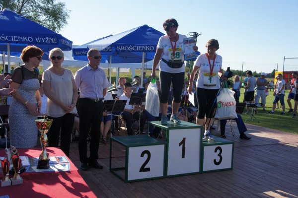 Pamiętając o temperaturze powietrza jaka panowała tego dnia dziękujemy za uświetnienie ceremonii zamknięcia Imprezy i wręczanie nagród najlepszym zawodnikom i zawodniczkom : zastępcy wójta gminy Krościenko Wyżne Alicji Fejkiel-Guzik, przewodniczącemu rady gminy Antoniemu Dębcowi, radnemu gminy Edwardowi Marszałkowi, dyrektor szkoły podstawowej w Krościenku Wyżnym Marcie Such oraz radnemu powiatu krośnieńskiego Markowi Aftanasowi. Szczególną rolę w tym dniu odegrał również Pan Stanisław Jagieło, który swoim kunsztem komentatorskim i profesjonalną postawą zapewnił wspaniałą oprawę imprezie. Wywiady z zawodnikami i ciekawe komentarze były „wisienką na torcie” całych zawodów. Dobrze przygotowane trasy, ciekawe nagrody i wiele innych atrakcji były promocją naszej gminy. Wierzymy, że sportowcy którzy 28 sierpnia przyjechali do nas z całej Polski swoimi pozytywnymi komentarzami „przyciągną” za rok kolejnych biegaczy.