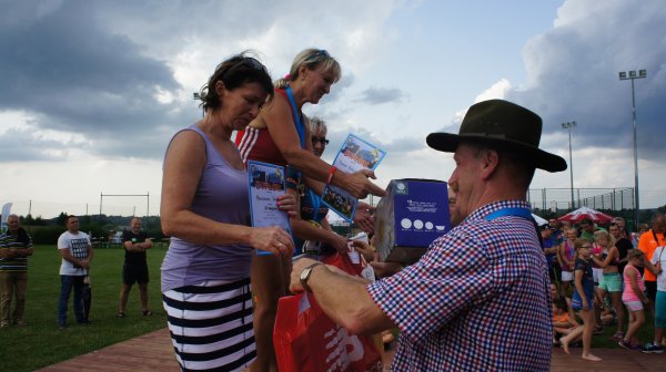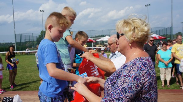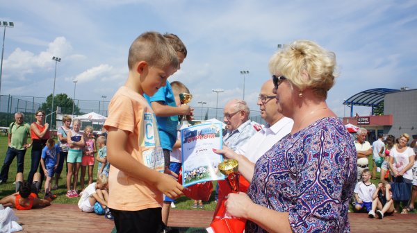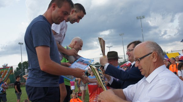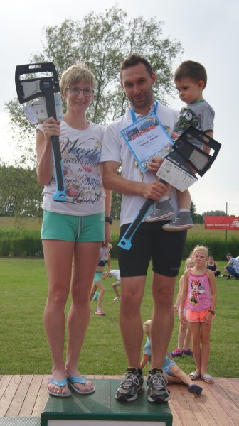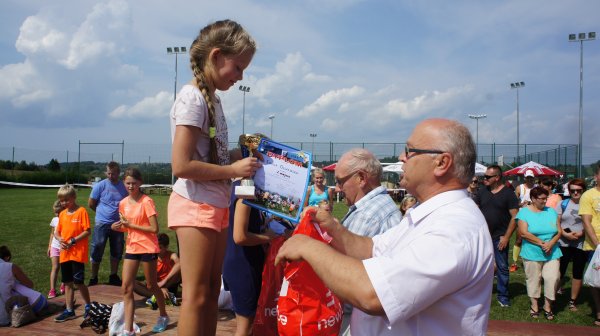 27 sierpnia br. przy Gminnym Ośrodku Sportu i Rekreacji w Krościenku Wyżnym po raz jedenasty stanęli do rywalizacji pasjonaci lekkiej atletyki. Pod patronatem Pana Jana Omachla wójta gminy Krościenko Wyżne i Pana Dariusza Sobieraja radnego sejmiku województwa podkarpackiego odbyły się biegi dzieci i młodzieży w 6 kategoriach wiekowych oraz biegi na 10 km pn. „Dycha Siekiernika” , 5 km „Siekierniczek” i „Marsz Siekiernika” Nordic Walking na 5km. W ubiegłym roku w ramach jubileuszu 10-lecia wszyscy, którzy ukończyli biegi i marsz, otrzymali pamiątkowy medal w kształcie siekiery. W taki sam sposób uhonorowano zawodników podczas minionej edycji, tylko tym razem siekiera miała inny kształt (według wielu startujących medal był jeszcze piękniejszy). Wsłuchując się w głosy zawodników biorących udział w rywalizacji widać, że powstał ciekawy zwyczaj zbierania „medalowych siekier” z Krościenka. Wiele osób jednoznacznie stwierdziło, że rozpoczyna kolekcjonowanie i już nie może się doczekać jaką formę przybierze medal w przyszłym roku. Jeden z uczestników dumnie oświadczył, że zamierza dla swojego synka na „osiemnastkę” uzbierać tych siekier 18 i dwie już ma, co go bardzo cieszy. Życzymy spełnienia obietnicy. W sumie w zawodach wzięło udział 360 sportowców. Dla uczestników biegów dzieci i młodzieży organizatorzy przygotowali paczki ze słodyczami a najlepsi w swoich kategoriach otrzymali nagrody rzeczowe i puchary, które wręczyli wójt gminy Jan Omachel, dyrektor GOPS-u Pani Lucyna Liput i sołtys Krościenka Pan Bolesław Pudłowski. W trakcie trwania zawodów, dzieci mogły również bezpłatnie skorzystać z fikolandu. Można powiedzieć, że w tym dniu pogoda sprzyjała sportowcom. Najmłodsi rywalizowali przy bezchmurnym niebie, natomiast podczas startu biegów głównych i marszu nordic walking lekki deszcz oczyścił powietrze i delikatnie schłodził uczestników. Późniejsza rywalizacja odbyła się już przy sprzyjającej sportowcom pogodzie. Jednak potem aura znowu nie pozwoliła o sobie zapomnieć. Najpierw przy strugach deszczu nagrody zwycięzcom startów głównych wręczali Pan Wójt, Pan Dariusz Sobieraj i Pan Edward Marszałek, później deszcz przerwał zaplanowaną na ten wieczór zabawę taneczną. Ale w tym dniu najważniejsi byli pasjonaci biegania, a dla nich wszystko ułożyło się i było po ich myśli. Pogoda dla biegaczy, dobrze przygotowane trasy, ciekawe nagrody i piękny medal w kształcie siekiery. I przypomnę jeszcze tylko, że nie byłoby by tego wszystkiego gdyby nie Pan Janusz Szmyd, który wymyślił tę imprezę i od 11 lat czuwa nad jej organizacją, dzięki czemu zawody stały się ważnym punktem na mapie biegów w naszym województwie.
