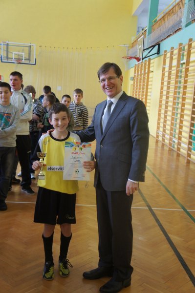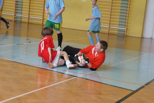 9 lutego 2013 na hali sportowej w Krościenku Wyżnym odbył się XIV Halowy Turniej Piłki Nożnej Młodzików o Puchar Wiceprzewodniczącego Sejmiku Województwa Podkarpackiego Pana Dariusza Sobieraja. W turnieju wzięli udział piłkarze urodzeni w 2000 r i młodsi. Łatwo zauważyć, że chłopców tych nie było jeszcze na świecie kiedy Pan Sobieraj obejmował patronat nad turniejem 14 lat temu. Przez te wszystkie lata zaproszone drużyny otrzymywały piękne puchary i nagrody rzeczowe. Odbyło się wiele zaciętych i pełnych emocji meczów piłkarskich, którym często towarzyszyły zarówno łzy szczęścia jak i smutku po przegranych spotkaniach. Podobnie było i w tym roku. I drużyna GKS Krościenko Wyżne spotkała się finale z faworytem turnieju drużyną Koniczynki Guzikówka, która we wcześniejszych spotkaniach gładko radziła sobie ze swoimi przeciwnikami pokonując ich wysoką różnicą bramek. W finale obie drużyny stworzyły kilka dogodnych sytuacji jednak nikomu nie udało strzelić bramki i spotkanie zakończyło się bezbramkowym remisem, po którym nastąpiła seria rzutów karnych. Po pierwszej kolejce prowadziliśmy 1 – 0, lecz potem nie udało się nam wykorzystać dwóch strzałów i w trzeciej ostatniej kolejce do piłki podszedł najlepszy zawodnik turnieju, który wcześniej zdobył 11 bramek dla zespołu z Guzikówki. Kiedy wszystkim kibicom wydawało się, ze będzie to ostatni karny tych zawodów, bramkarz drużyny gospodarzy stanął na wysokości zadania i wybronił mocny strzał przeciwnika. Zgromadzeni kibice i zawodnicy obydwu drużyn z Krościenka podskoczyli ze szczęścia ponieważ zwycięstwo w turnieju znowu stanęło na wyciągnięcie ręki. Czwarta kolejka karnych była jeszcze remisowa jednak niestety w piątej serii bramkarz z Guzikówki wybronił strzał naszego zawodnika czym zapewnił I miejsce drużynie z Krosna. Pan Dariusz Sobieraj podczas ceremonii zamknięcia turnieju podziękował zawodnikom za udział i dostarczenie kibicom tak wielu wrażeń sportowych. Wręczył wszystkim drużynom nagrody rzeczowe, a najlepszym przekazał piękne puchary. Kończąc XIV Turniej zaprosił sportowców do wzięcia udziału w kolejnych zawodach w przyszłym roku.